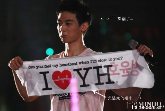 Oh Minho. I loved how he was holding "I love Yunho" towel when his tallest hyung was busy with Kyuhyun ;) |