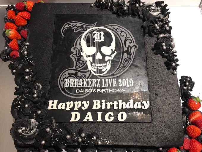 Upclose shot of DAIGO's early birthday cake that was presented to him at the end of BREAKERZ LIVE 2019 ~Heisei Saigo no DAIGO's BIRTHDAY~ https://pbs.twimg.com/media/D3l9e81UEAAF_g2.jpg:small https://twitter.com/shinpei_brz/stat...60370614378496 Surprisingly I kinda like the cake design even though it's quite gothic like emo haha |