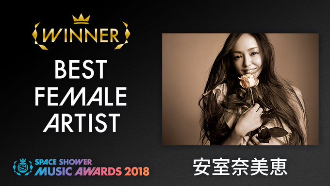 Namie won Best Female Artist in today's SPACE SHOWER MUSIC AWARDS 2018 which was held in Pacifico Yokohama
