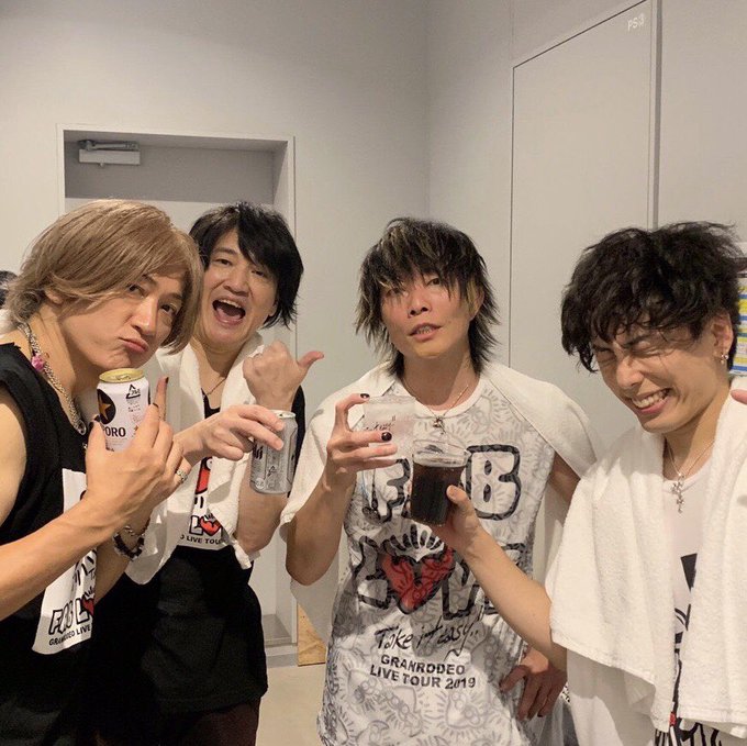 The staff posted a photo of GRANRODEO backstage with KISHOW utilising the shot glass good https://pbs.twimg.com/media/ECn3lniU...jpg&name=small https://twitter.com/GR_staff/status/1164734211942576128 KISHOW like a boss for being the only 1 who uses the shot glass x) |