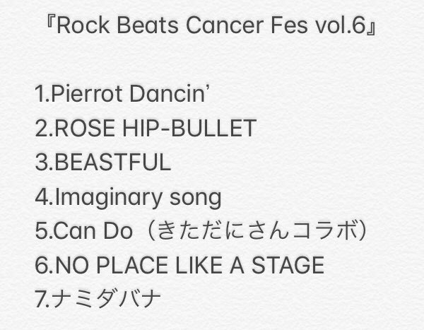 1) The Other self 2) Asame Shimae no Yasashii Sekai 3) BEASTFUL 4) ROSE HIP-BULLET 5) Can Do https://twitter.com/okiku_ningyou/st...67958827184128 Aside from 4 songs that're typical standard fare done in music events , it's rare for GRANRODEO to do a B-side number from BEASTFUL which I find it interesting |