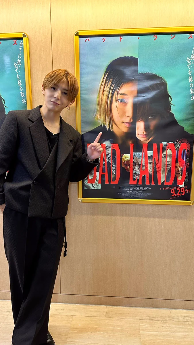 Yamada Ryosuke of Hey! Say! JUMP at a preview screening for his newest film BADLANDS! "Every day on set was filled with a sense of excited tension. It's a thrilling and fast-paced movie that I hope is enjoyed by as many people as possible!" https://twitter.com/johnnys/status/1694847053937955210 |
