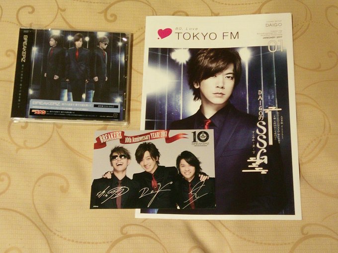 https://pbs.twimg.com/media/C2iCXSFUkAA7r_1.jpg:small https://pbs.twimg.com/media/C2iCYSVUoAAxp-K.jpg:small https://pbs.twimg.com/media/C2iOiX0UAAIcBy0.jpg:small https://pbs.twimg.com/media/C2iOkDiUsAA4qCI.jpg:small Johnnys shop photos from Johnny Shop Osaka I'm still Kame loyal heh https://pbs.twimg.com/media/C2iC6J-UoAEERJW.jpg:small 4 copies of tower+ Jan 2017 issue with BREAKERZ on the cover My friend mailed BREAKERZ's Ikusen no Meikyuu de Ikusen no Nazo wo Toite CD regular with team brz BREAKERZ 10th Anniversary YEAR! 2017 postcard + TOKYO FM Jan 2017 magazine to the hotel I stay https://pbs.twimg.com/media/C2iDSdCVQAEsdF0.jpg:small I went to some Tower Records shops today & they either sold out Ikusen no Meikyuu de Ikusen no Nazo wo Toite and/or they ran out of event tickets >_< Looks like I have to get them on Sun when the event takes place D: |