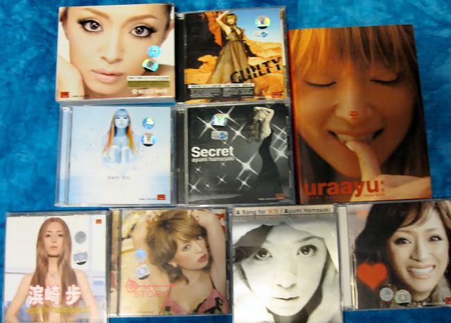 Ayu Stuff: http://i5.photobucket.com/albums/y169/RRSR/Image2.jpg Non-Ayu Albums: http://i5.photobucket.com/albums/y169/RRSR/Image3.jpg Singles: http://i5.photobucket.com/albums/y169/RRSR/Image4.jpg =D? I'm waiting for a couple CDs to come in the mail, and I preordered PAST < FUTURE. I can't wait for it =D!! |