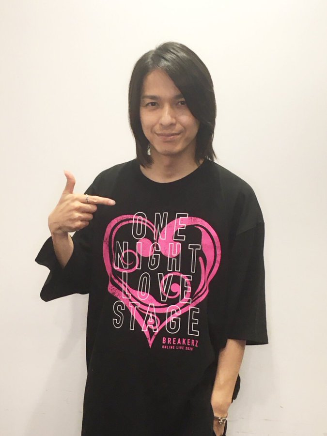 AKIHIDE wearing the BREAKERZ ONLINE LIVE 2020 -ONE NIGHT LOVE STAGE- big silhouette T-shirt