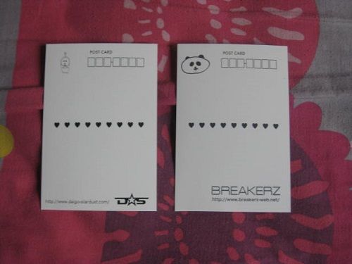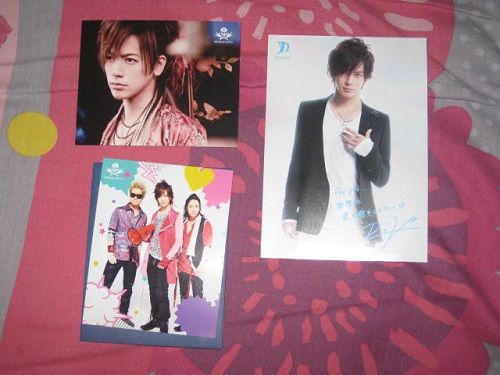 No wonder avex Taiwan took a bit longer than expected to produce it but I suppose it's all worth the wait === Came from 5music , both Taiwan presses http://i43.tinypic.com/2n0laa9.jpg B'z - GO FOR IT, BABY -Kioku no Sanmyaku- single (CD + DVD limited edition + Chinese translation sheet) NEWS - NEWS album (CD only + Chinese translation sheet) The 1st B'z single that I bought , simply because I'm not interested to buy/listen both their latest best albums they put out this year & since GO FOR IT, BABY -Kioku no Sanmyaku- wasn't included in C'mon , at least I have an excuse to get it :innocent And even more rare BREAKERZ & DAIGO☆STARDUST items came :D BREAKERZ : http://img.photobucket.com/albums/v2...I/IMG_6205.jpg BREAKERZ VALENTINE ROCK PARTY postcard Wow what a trip down memory lane , 5 years ago to be exact >o< DAIGO definitely changed the most (for the worst perhaps ? xD) but the other 2 looks the same to me :P This's now officially the oldest BREAKERZ concert good I've owned & not from BREAKERZ ONE MAN LIVE 2008 FUTURE IN BLUE anymore :D DAIGO☆STARDUST : http://img.photobucket.com/albums/v2...I/IMG_6201.jpg - 2006 Valentine postcard - 2006 autographed birthday postcard The 2nd autographed item I owned of DAIGO☆STARDUST & erugh he looks so anorexic back then , it's gross + I will go against what my friend says in that I prefer DAIGO to be fat/pudgy as compared to looking like a skeleton :dead2 The back of 1 DAIGO☆STARDUST & BREAKERZ VALENTINE ROCK PARTY postcards http://img.photobucket.com/albums/v2...I/IMG_6199.jpg DAIGO's Kumapanda drawings are awesome xD , even the DAIGO☆STARDUST inspired Kumapanda is adorable in its own rather weird wacky way xD It reminds me a lot of Doraemon & it even has its own name - DAIEMON which sounds like something straight from a horror monsters movie LOL |