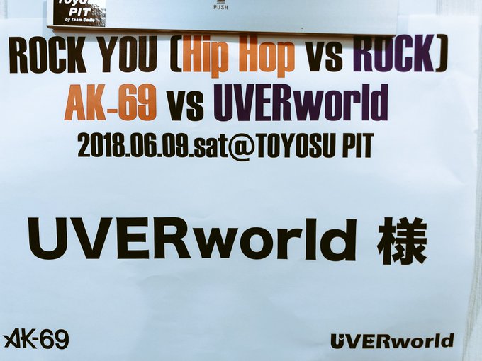 AK-69 & UVERworld today are performing together at Tokyo's Toyosu PIT , in a joint concert is titled ROCK YOU