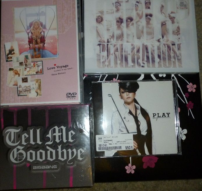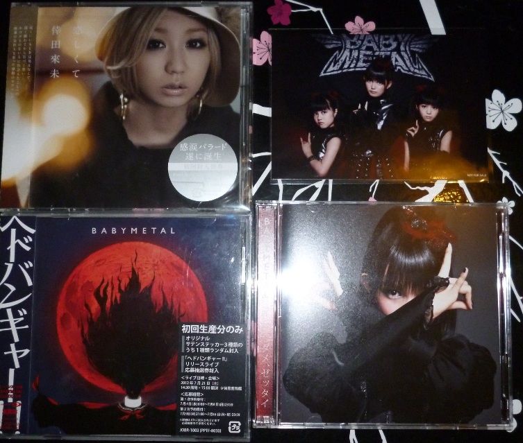 YG Family Concert 2011 DVD Girl's Generation - Girls & Peace limited box edition Girl's Generation - First Japan album CD+DVD Kana Nishino DVD -love voyage Big Bang - Beautiful Hangover CD+DVD Namie Amuro - PLAY CD+DVD 2NE1 First album mini - Electro Hako Banban Picaso CD+DVD Perfume - Spending all my time CD+DVD Gackt - White Lovers CD+DVD Koda Kumi - Koishikute CD+DVD BABYMETAL - Headbanger BABYMETAL - Ijimi, Dame, Zettai CD+DVD "I" version (video clip + making) Maaya Sakamoto - Buddy limited edition CD Maaya Sakamoto - Single collection+ Mitsubachi Maaya Sakamoto - Kazeyomi DVD Maaya Sakamoto - Gift DVD Spoiler: