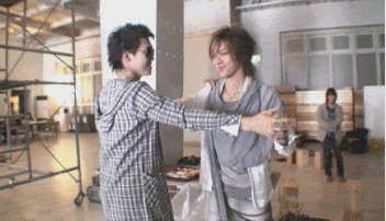 These are so classic 8D http://img.photobucket.com/albums/v2...Z-HarukaXD.gif http://img.photobucket.com/albums/v2...-Haruka2XD.gif XXXXXXXXXXXXXXDDDDDDDDDDDDD those are taken from the making offshot clip of Shunrenka ! If you haven't download it , I suggest you should via here I was roaring with laughter when I watched it . It's probably 1 of my fave making offshot clips of the guys it's PG rated , no raping/humping scenes & let alone silly weird pandomime/robot dances were involved :lmfao only DAIGO can think of stupid silly things like doing tango to Shunrenka with SHINPEI -_-''' |