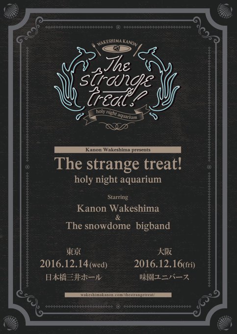 https://www.instagram.com/KNOW_INSTA/ Her Instagram handle is o_O Also Kanon will perform 2 The strange treat! holy night aquarium concerts in December together with The snowdome bigband https://s32.postimg.org/ixp784rlh/image.jpg The dates are on 14th Dec at Tokyo's Nihonbashi Mitsui Hall & 16th Dec at Osaka's Misono Universe http://wakeshimakanon.com/thestrangetreat/ Kanon always have interesting names to her tours/concerts |
