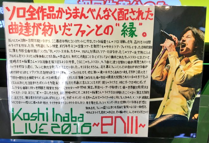 Photos & setlist from yesterday's Koshi Inaba LIVE 2016 ~enIII~ which the tour concluded at Nippon Budokan
