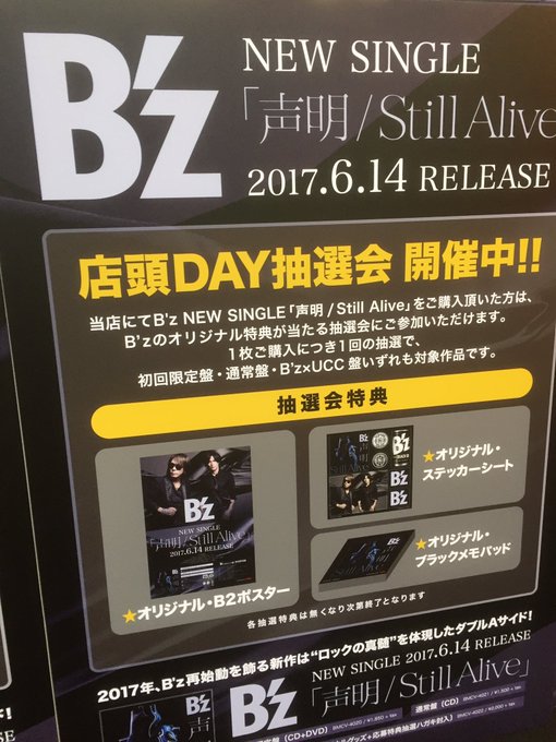 B'z Facebook page posted various photos of more Seimei / Still Alive promo in different CD shops