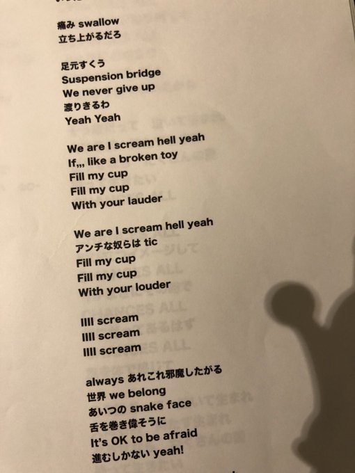 https://pbs.twimg.com/media/Djg-gAbVsAARFZi.jpg:small https://twitter.com/anation_navi/sta...53544611078144 Not very sure what a-nation meant by that , meaning Kuu will talk the most or will be the headliner act ? :confused === Partial lyrics of ScREaM https://pbs.twimg.com/media/DjkU_5VV4AA-4kW.jpg:small https://pbs.twimg.com/media/DjkU_5VV4AE363u.jpg:small https://twitter.com/KODAKUMINET/stat...73484457922563 |