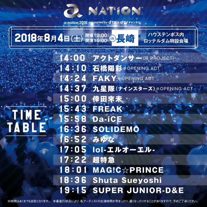 Sorry, I don't really get that system as well. It says it's first come, first serve,but you have 24 hours to pay after you completed the process on the site and you can still get declined it seems? The LINE application was at the same time at the beginning, so maybe that's why? Sorry, I don't know. :( a-nation setlist for Nagasaki from Twitter: Dangerous IS THIS TRAP? BE MY BABY CHANCES ALL め組のひと PARTY LIT Poppin' love cocktail A fresh setlist! |