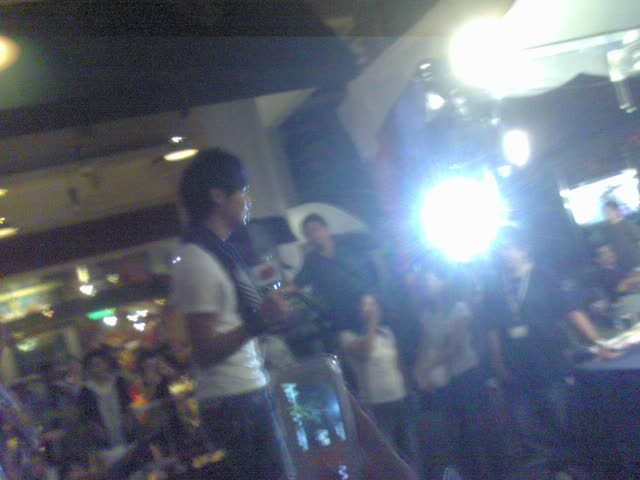 first he rock the place with the song 我回來了 I'm Back. after that talking to the MC, and next, there's a cute activity to let one of the fans go to the stage and become his GF for 3 min (lol). the MC chose the one who raised her hands fast, and she was a 14~15 years old girl who is quite tiny. she sang 2人 Two Of Us for him and evan hug her after that XDDD the audience were shouting to them and i'm afraid someone will hit her after the show XDD. and after some talking, he sang stay with me, really good song. and finally the autograph session started. for those who bought the album can have an autograph by him, but sadly, no pics could be taken. there's a long queue in the location. well to be honest, i'm not interested with him, i just went there to see an artist singing. cause the chance is rare. but after the show, i was REALLY regret for not buying the album, cause he is really talented and his song is awesome! but anyway here are the pic of the show, sorry for the low quality, its taken by mt phone Spoiler: