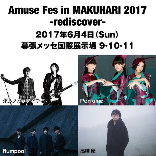 flumpool & other artistes will perform at Amuse Fes in MAKUHARI 2017 -rediscover- on 4th June