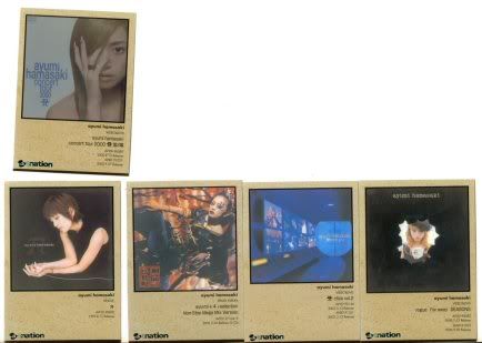 AYU Ayu-Ro-Mix $12 A Clips $15 Ayumi Hamasaki A VCD $15 M $6 Unite $6 9 dollars ![]() 10 dollars ![]() MISC. Speed - Real Life Final Dome Tour Concert $8 Aikawa Nanase - Live Emotion Concert Tour $8 Utada Hikaru - Can U Keep A Secret $6 NAMIE AMURO Love 2000 $5 Alarm$6 Think Of Me/ No More Tears $5 3 inch single Chase The Chance $6 Dreaming I Was Dreaming $6 A-Nation Artist cards Choose any cards u want. $2 for each $10 for 6 cards AYU CARDS ![]() ![]() Every Little Thing Cards ![]() ![]() Dream,Do As Infinity, and Exile Cards ![]()
