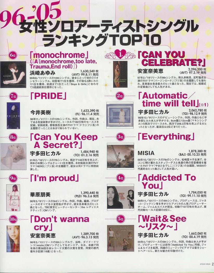 Oricon Female Top 10 Most Selling Single 1996-2005