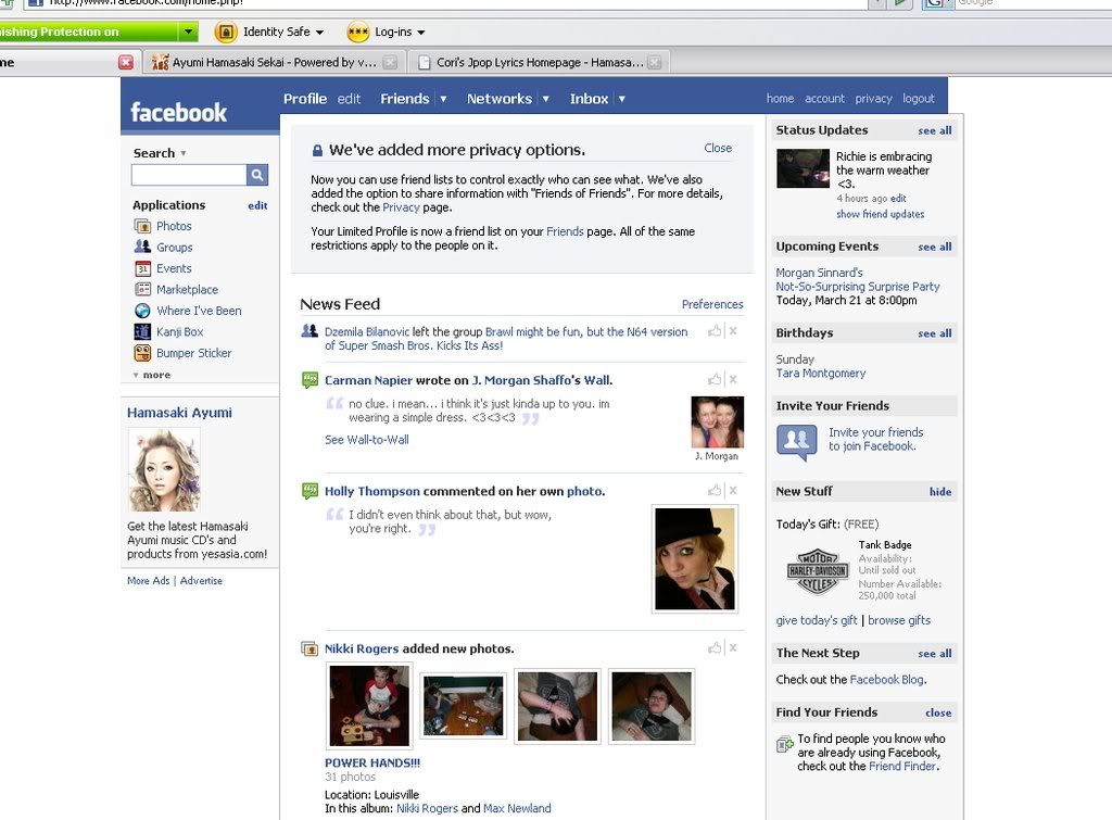 Oh my gosh, I saw that add today on Facebook too! But, I actually think that the ads they show you have to do with key words they find in your profile..same as Myspace. I bet somewhere on your profile are the words "Ayumi Hamasaki". :p