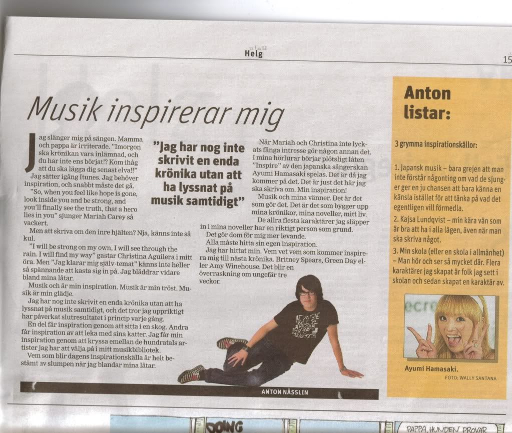 ![]() ...Ayu appeared! That feelt really random. Ayu of all ppl in such a little newspaper in Umeå, Sweden. Oh well, we feelt like we wanted to share this moment with you all. ^^ Spoiler: