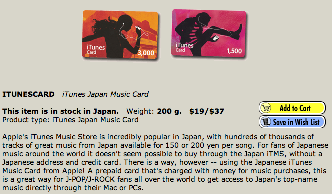 This is something I'd definitely try if I wanted to get stuff from iTunes Japan to support whichever artist (especially Ayu)... I don't mind the $5 extra really...