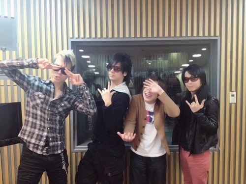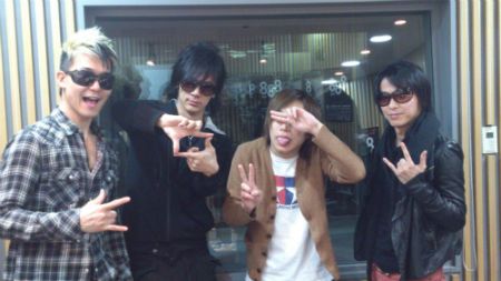 Today in the wee hours of the morning at 1am Japan time , the guys made a live guest appearance at Golden Bomber's Kiryuin Sho's All Night Nippon radio show to promote RUSTY HEARTS which will finally get released tomorow .