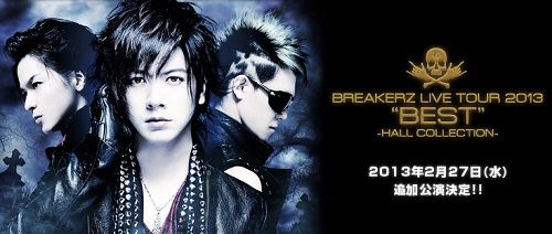 2013年1月19日 (Sat) Chiba @ Narita International Cultural Center Main Hall 2013年1月20日 (Sun) Gunma @ Kiryu City Hall Civic Cultural Hall Silk 2013年1月26日 (Sat) Shiga @ Yasu Cultural Hall Large Hall 2013年1月27日 (Sun) Hyogo @ Kobe Culture Hall Large Hall 2013年2月2日 (Sat) Fukuoka @ Fukuoka International Congress Center Main Hall 2013年2月9日 (Sat) Aichi @ Aichi Prefectural Art Theater Great Hall 2013年2月11日 (Mon) Miyagi @ Sendai Shimin Kaikan Hall 2013年2月16日 (Sat) Hokkaido @ Sapporo Education & Culture Center Great hall 2013年2月20日 (Wed) Tokyo @ Nakano Sun Plaza Hall 2013年2月21日 (Thurs) Tokyo @ Nakano Sun Plaza Hall 2013年2月23日 (Sat) Osaka @ NHK Osaka Hall 2013年2月24日 (Sun) Osaka @ NHK Osaka Hall 2013年2月27日 (Wed) Tokyo @ NHK Hall http://breakerz-web.net/special/brzl.../schedule.html 5 outta 13 concert dates have been sold out so far , not bad not bad at all ![]() And Day 3 of BREAKERZ LIVE TOUR 2013 “BEST” -HALL COLLECTION- will start later today at Shiga's Yasu Cultural Hall Large Hall & Day 4 will be tomorrow at Hyogo's Kobe Culture Hall Large Hall !