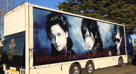 Along with a photo mi included which's the oh so cool BREAKERZ LIVE TOUR 2013 “BEST” -HALL COLLECTION- truck ![]() ![]() Before the conclusion of yesterday's blog entry , mi also stated RUSTY HEARTS peaked at #6 overall in the Oricon weekly singles chart , giving the guys their 14th straight top 10 single & also thanking everyone for their support in buying the single too ![]() BREAKERZ LIVE TOUR 2013 “BEST” -HALL COLLECTION- will be taking centrestage once again this weekend , in which Day 3 / 26th Jan (Sat) will be held at Shiga's Yasu Cultural Hall Large Hall while Day 4 / 27th Jan (Sun) will be held at Hyogo's Kobe Culture Hall Large Hall !