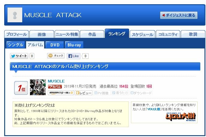 MUSCLE ATTACK's debut album MUSCLE overall peak position in the 1st week - #154 ![]()