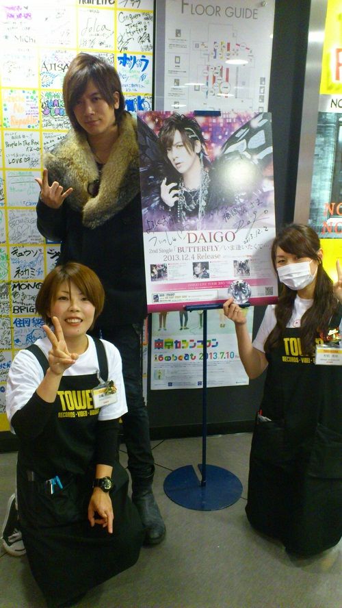 DAIGO stopped by Tower Records Shibuya on Wed morning prior to the start of his 5th handshake event he did for BUTTERFLY / Ima Aitakute... at Tokyo Dome City Lacour Garden Stage . ![]() https://twitter.com/TOWER_Shibuya/st...67467861192704