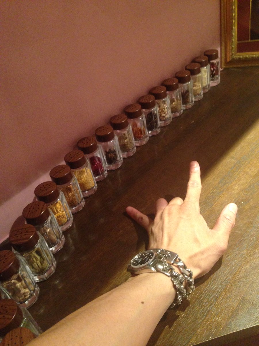 インドカレー屋さんにて。レジに凄いスパイスの数。。。これ全部お店で実際に使ってるんだって !!