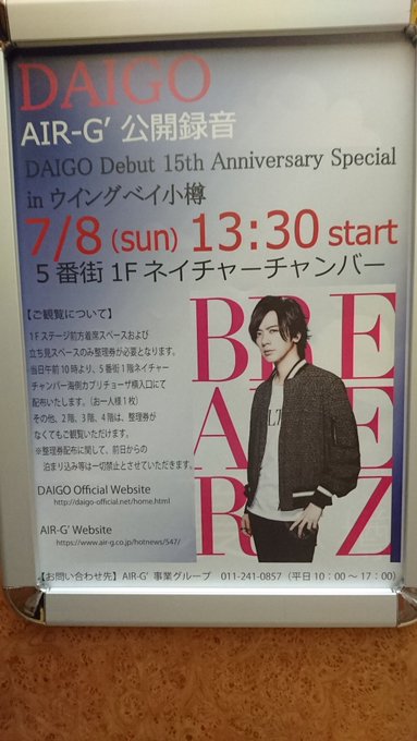 AIR-G’ public recording DAIGO Debut 15th Anniversary Special Wing Bay Otaru notice