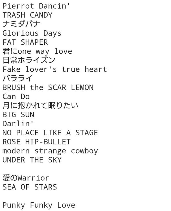 ![]() https://twitter.com/gr_tomoko1005/st...89755528593414 Finally , Shounen no Hate ! My sister was so excited when she saw Outsider on the setlist cos she likes the song a lot & it's 1 of many older fan favourite songs 7 setlists so far and counting Spoiler: