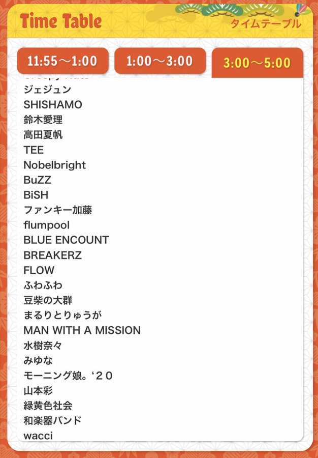 CDTV Special! Toshikoshi Premium Live 2019 → 2020 will began broadcasting at 11.55pm until 7am the next day For flumpool , they will perform during the 3am to 5am timeslot http://www.tbs.co.jp/cdtv/splive2019/