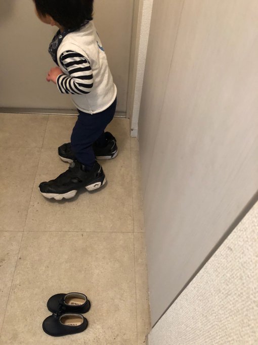 This's so cute , SHINPEI's nephew wore his uncles' shoes instead of his own pair