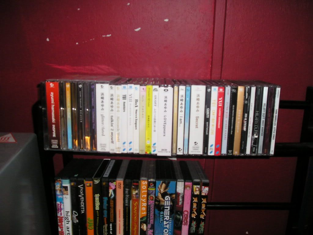 - Ayumi Hamasaki - MY STORY - Ayumi Hamasaki - Cyber trance presents ayu trance 2 - Ayumi Hamasaki - DUTY - Ayumi Hamasaki - Loveppears (single disc version) - Ayumi Hamasaki - I am... - BoA - BEST OF SOUL The following are all JP Presses unless otherwise stated. Namie Amuro Singles I know I have more than one of multiple items...=P - Body Feels EXIT (8CM) - CAN YOU CELEBRATE? (8CM) - How to be a girl (8CM) - a walk in the park (8CM) - Chase the Chance (8CM) - Dreaming I was Dreaming (8CM) - Say the word - You're My Sunshine (8CM)* - 愛してマスカット (with Super Monkey's) (8CM)* - TRY ME ~私を信じて~ (with Super Monkey's) (8CM)* - 太陽のSEASON (with Super Monkey's) (8CM)* - Stop the music (8CM)* - Body Feels EXIT (8CM)* - Chase the Chance (8CM)* - Don't wanna cry (8CM)* - You're my sunshine (8CM)* - SWEET 19 BLUES (8CM)* - a walk in the park (8CM)* - CAN YOU CELEBRATE? (8CM)* - How to be a Girl (8CM)* - Dreaming I was dreaming (8CM)* - I HAVE NEVER SEEN (8CM)* - RESPECT the POWER OF LOVE (8CM)* - SOMETHING 'BOUT THE KISS (8CM)* - Toi Et Moi (8CM)* Albums - SWEET 19 BLUES (OS Press) - SWEET 19 BLUES (JP Press) - Concentration 20 - PLAY [First Press] (CD+DVD) - STYLE - Queen of Hip-Pop - 181920 + films (CD+DVD) - Dance Tracks Vol. 1 - ORIGINAL TRACKS VOL. 1 - BEST FICTION [First Press / CD+DVD) - GENIUS 2000* - break the rules* DVDs - Namie Amuro - SPACE OF HIP-POP TOUR 2005* - Namie Amuro - filmography* Magazine - S-Cawaii August 2008 Issue Posters - BEST FICTION Promo Poster - Tsutaya BEST FICTION Poster* Koda Kumi Albums - KINGDOM (First Press / CD+2DVD / HK Press) Singles - FREAKY (First Press / CD Only) - FREAKY (First Press / CD+DVD) * On it's way!
