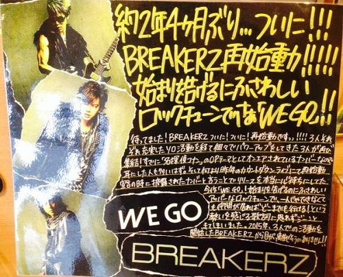 もうゲットされた方も多いと思いますがBREAKERZ再始動シングル「WE GO」フラゲできます!!タワレコオリジナル特典は“ポスター”かなりかっこいいポスターになってますので ぜひゲットしてください!明日のフリーライブ楽しみ♪#フラゲ日