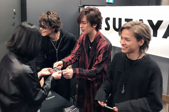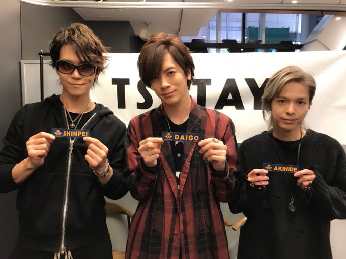 The guys today at Tsutaya Shibuya holding each of the sticker strip that has each of their names on them https://twitter.com/Daigo19780408/st...105348609?s=19 So in the end SHINPEI's sunglasses stay on him again haha