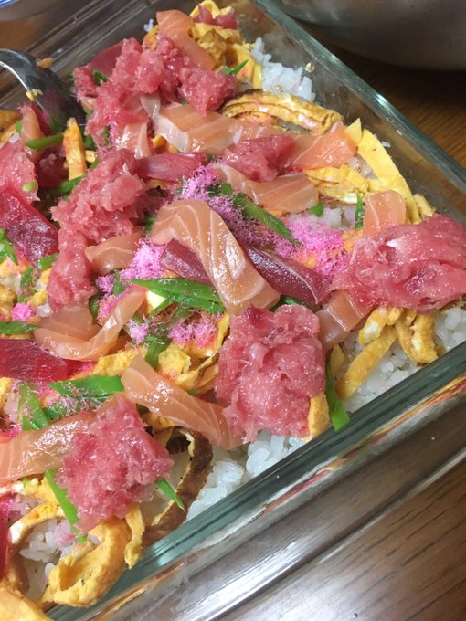 Today is Hina Matsuri and SHINPEI made Chirashi Sushi to celebrate it