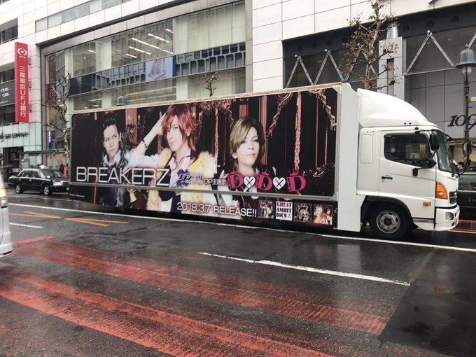 1 side of the truck will be promoting the current ongoing Dame Pri ANIME CARAVAN while the other side will have the photo of the guys . Driving routes the promo truck will undetake around Tokyo per day as follows : 5th March / today - Shibuya station 6th & 7th March - Ikebukuro station 8th & 9th March - Shinjuku station 10th March - Shibuya station 11th March - Ikebukuro station http://breakerz-web.net/news/other_021.html