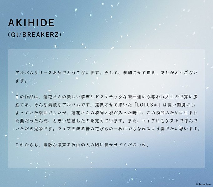 AKIHIDE's comments on his special guest appearance in April's Renka Live 2019 ~Hoshi no Habataku Yoru wa~