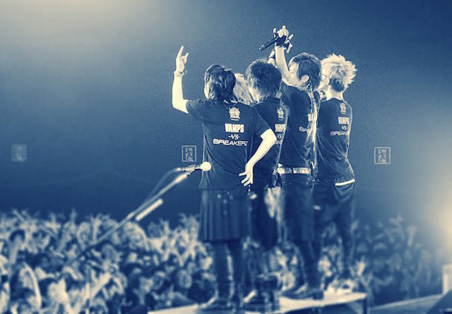 Staff blog updated today with them including this photo of the guys with VAMPS onstage during the 8th instalment of BREAKERZ 10 Shunen 10ban Shoubu -VS-