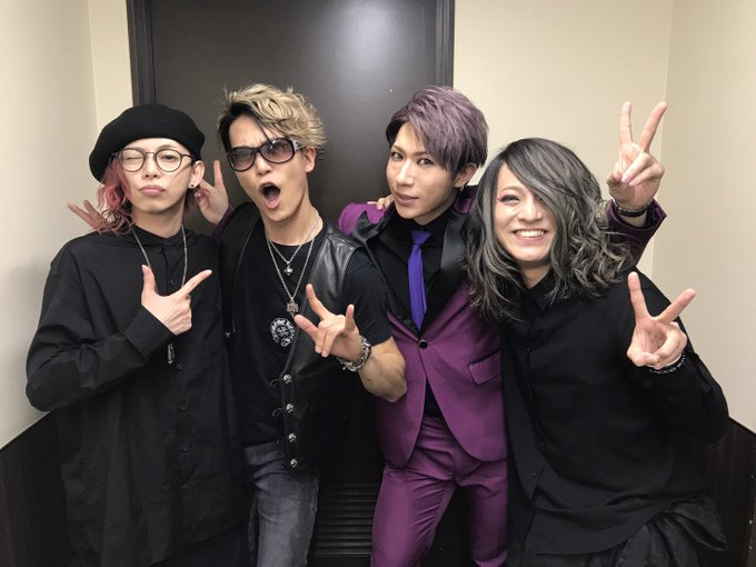 Group shot photo of Utahiroba Jun (Golden Bomber) , SHINPEI , Hosokawa Daisuke (LACCO TOWER) & Yuusuke (lynch.) from Utahiroba Jun's Twitter