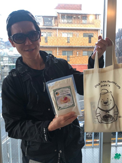 SHINPEI said the purpose of him going to Pancake Cafe Clover was that he will feature his 'eating adventures' in a future team brz fanclub magazine issue Not only that , SHINPEI also brought home a pancake mix from Pancake Cafe Clover too & he's holding a tote bag on his left hand which the bag's design is created by picture book writer Kato Yoko Wow no curry coverage for once x)