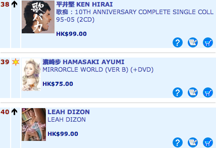 ![]() Asian releases #28 Asia Tour #39 Mirrorcle World (Depend on you ver.) -Overseas ver.- Japanese releases #7 Asia Tour #11 Mirrorcle World (Depend on you ver.) -Overseas ver.- #14 Mirrorcle World (C ver.?) #15 Mirrorcle World (YOU ver.) -Overseas ver.- #17 Mirrorcle World (YOU ver.) source: http://www.hmv.com.hk/charts/japanese.asp?subm=chart Last edited by visionfactory; 16th April 2008 at 10:31 PM. |