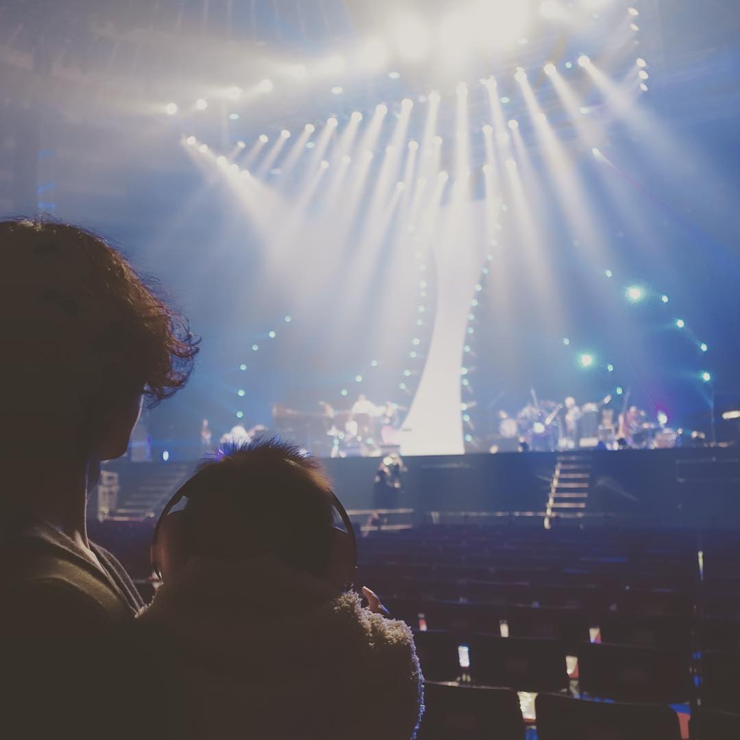 Mizushima Hiro posts photo of him & baby watching Ayaka, with # you were here too last year, under the spotlight.