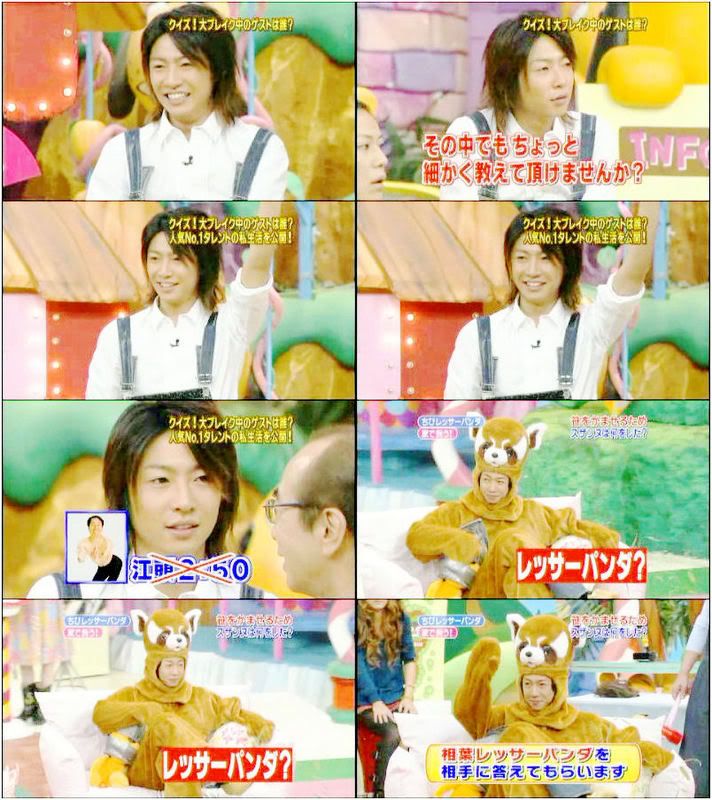 ![]() I assume this is a new episode of Tensai Shimura Zoo, the show he's always on. lol. And yes, that is him in a lesser panda suit (XD, Doumyouji said "Lesson panda!") http://sakuraiba.vox.com/library/pho...366750005.html |