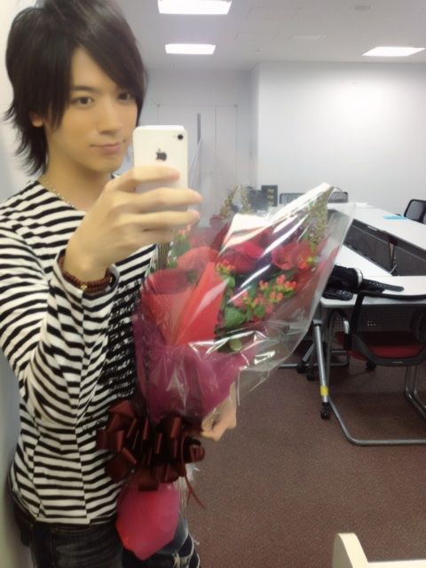 ![]() ![]() Caption included - 今日は収録でいち早く誕生日のお花をいただきました( ´ ▽ ` )ノ やたあ 薔薇薔薇\(//∇//)\ http://p.twipple.jp/lOHKk DAIGO received this bouquet of roses last night after he finished shooting/recording & who knew that roses actually sounds quite erm awful in Japanese o_O 薔薇薔薇 - Bara Bara Somehow I prefer roses when it's said in Chinese ie. 玫瑰 ; Méi Guī xD