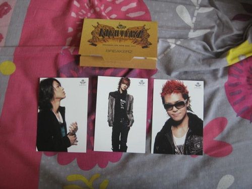 ![]() DAIGO☆STARDUST's CRAZY TO YOU !! mini pamphlet This's very very ... rare . Even I myself never seen this before :O but it's so cool & it helps that DAIGO☆STARDUST is making a big comeback this month ![]() Also .. ![]() BREAKERZ LIVE TOUR 2009 ~ 2010 FIGHTERZ secret postcard - DAIMI the nurse HAHAHAHA @ DAIGO . This's so very ... WRONG in every single level ~_~ ~_~ ~_~ ~_~ ~_~ ~_~On the upside , after 4 long years , I have finally collected if not hunt down ALL of the secret postcards of BREAKERZ from their concert goods *w* Tons of extra stuff I'll be giving away to peeps in their fandom , which includes : ![]() ![]() ![]() - BREAKERZ 2ND ANNIVERSARY LIVE WISH IN BUDOKAN postcard set - BREAKERZ LIVE TOUR 2009 ~ 2010 “FIGHTERZ” postcard set with no secret postcard - BREAKERZ 3rd Anniversary LIVE WISH 02 in NIPPON BUDOKAN postcard set + secret postcard -