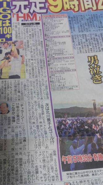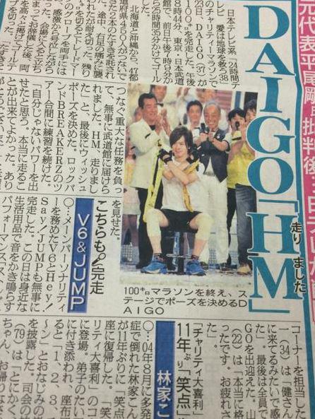 This morning's newspapers covered on DAIGO's conquer on the 100km / 24 Hour TV charity run